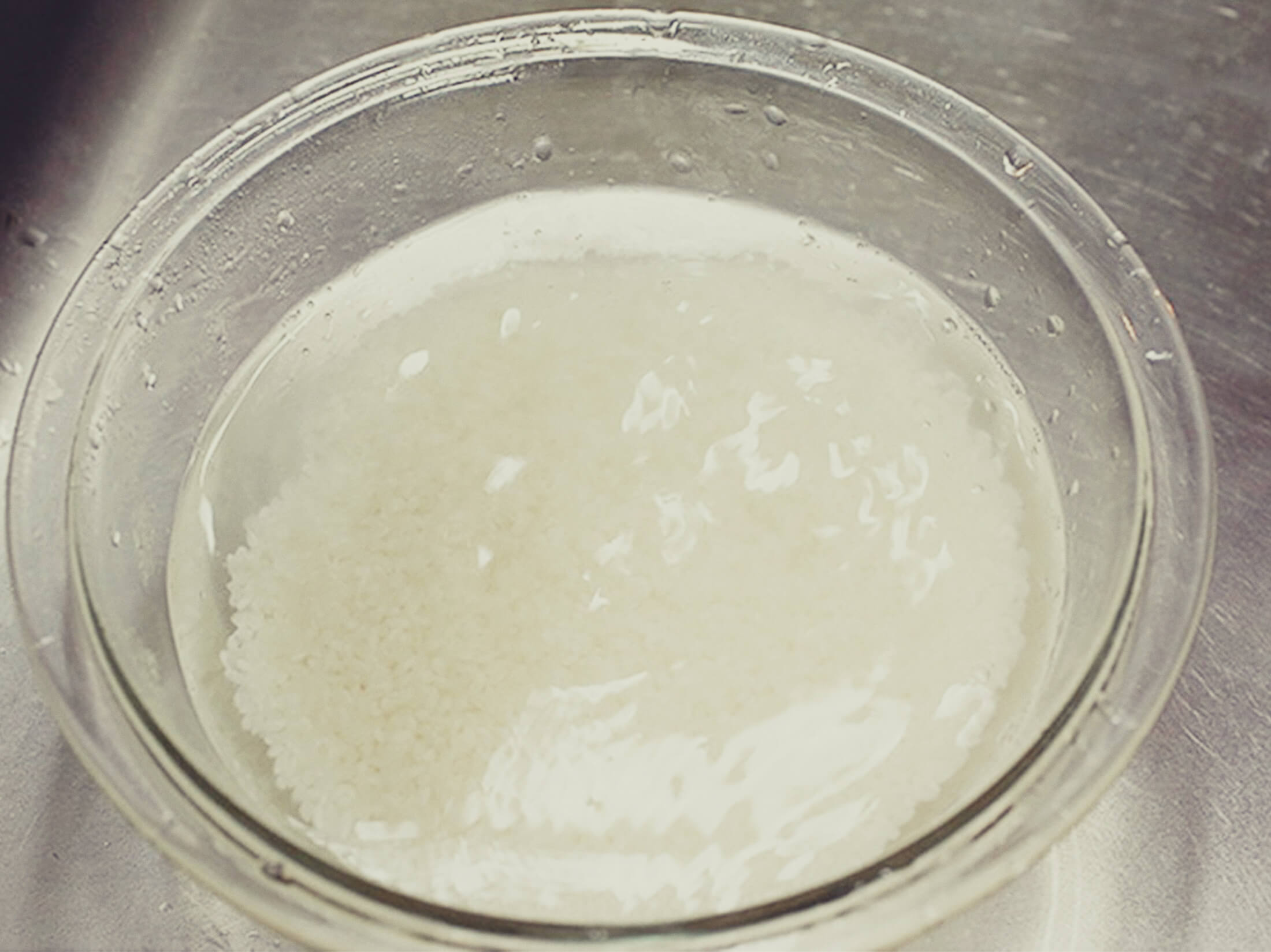 今のお米は昔のように手のひらでゴシゴシと研ぐ必要はありません。指を立て、ぐるぐるっと左右に20回程度(新米は10回以内)かき混ぜます。すすぎを2〜3回して(古米は臭いが消えるまで「研ぐ〜すすぐ」を繰り返します)、水の色がスポーツドリンクのような色になったらすすぎはOK。②と③の「洗米」は、3分以内で終わらせましょう。