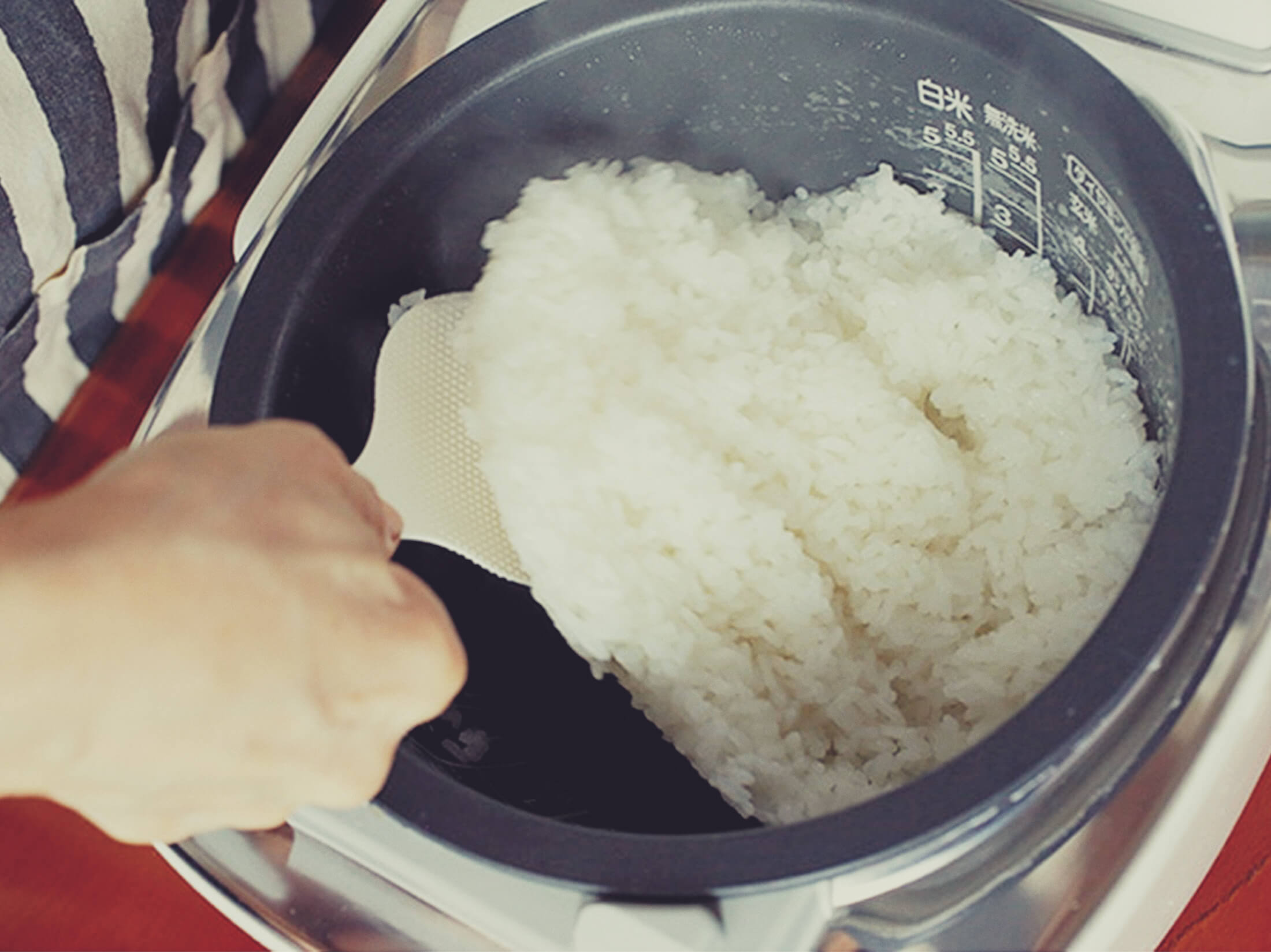 炊きあがったらすぐにふたを開け、しゃもじで十字にきり分け、それぞれを上下にひっくり返して混ぜます。そのまま2分程度蒸気を飛ばし、再度ふたをし蒸らします。